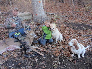 Bruce is a hunting fool!  So far this year (school year in my world) he's hunted elk, deer, ducks and I'm sure there's other things that I don't remember because he tries to hunt on his off days during the week while Coop and I are at school.  This is the deer he got and notice how ALL the "boys" had to be in the picture.